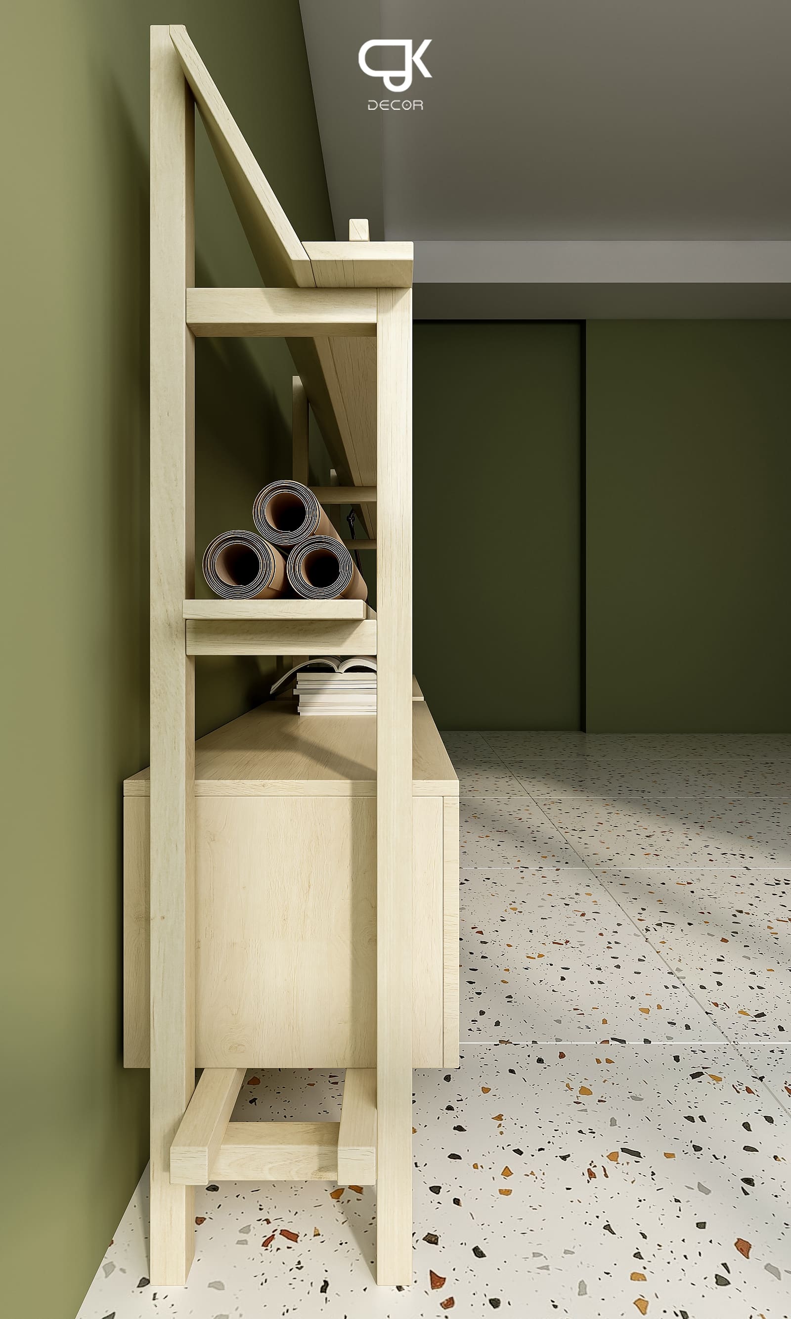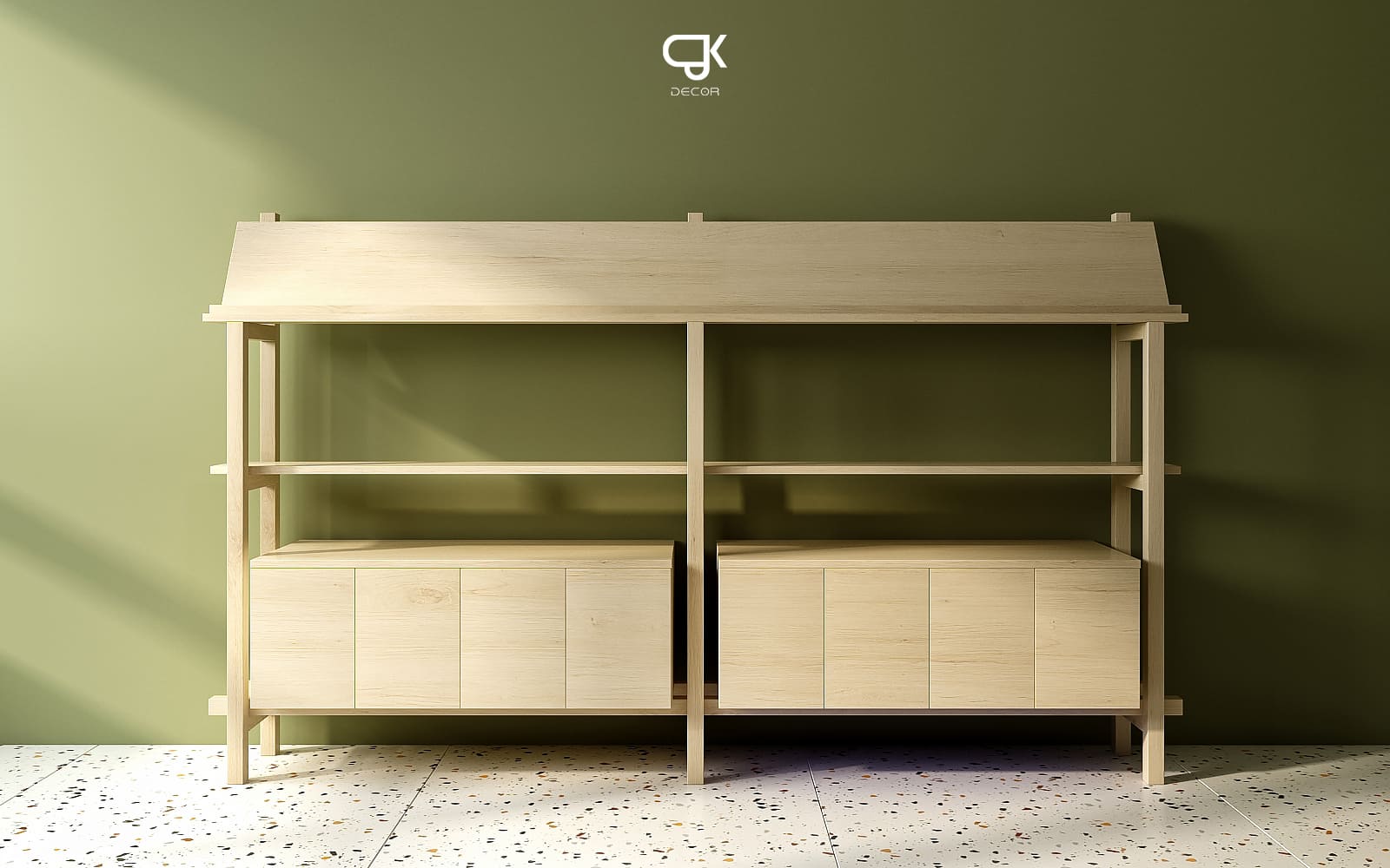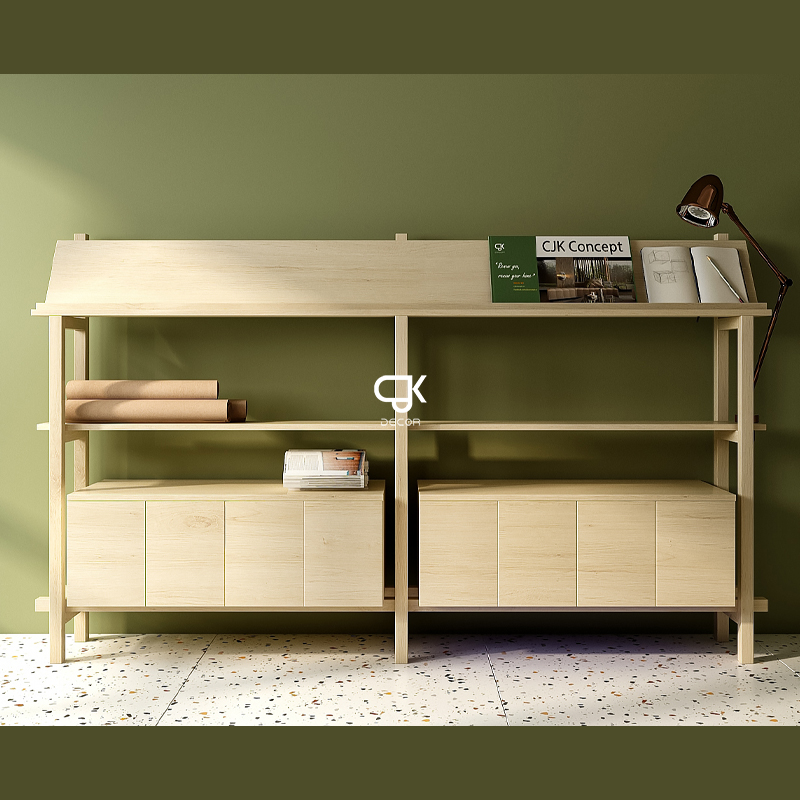 Sản phẩm mang sắc gỗ sáng tối giản, phù hợp cho phòng khách, phòng ngủ, khu vực sinh hoạt chung hoặc studio – nơi cần sự hòa hợp giữa trưng bày và cất trữ.
