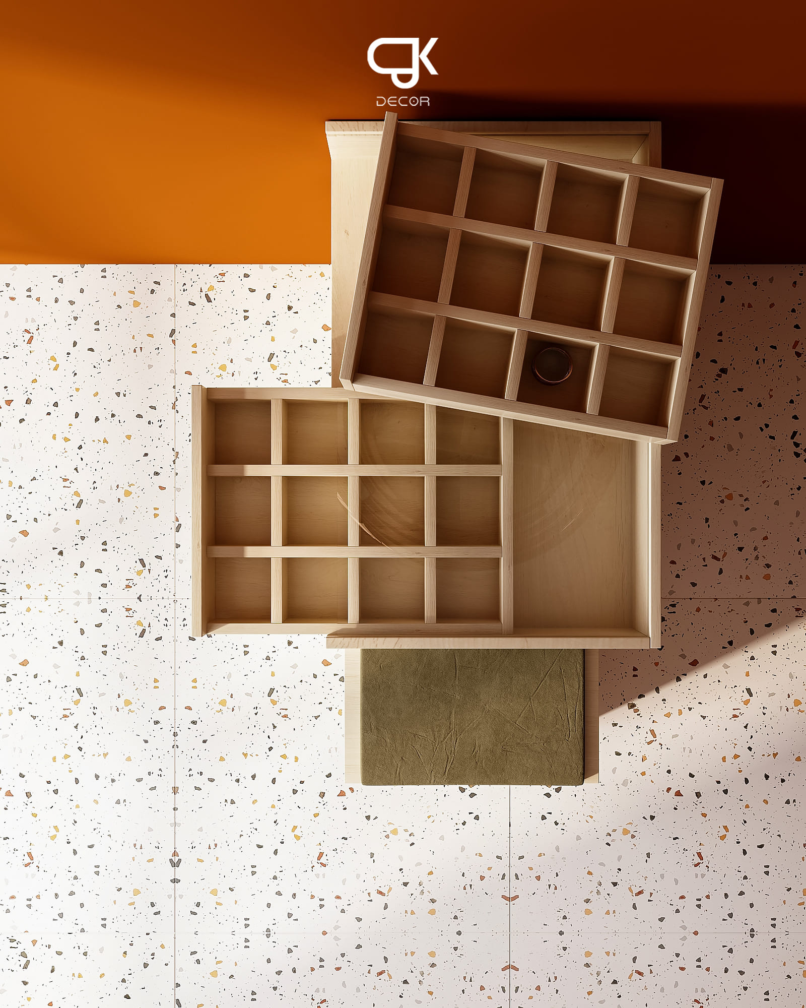 - Khay chia ô, ngăn kéo trượt: MDF/Plywood hoàn thiện thủ công.
