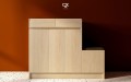- Ghế ngồi tích hợp: đệm êm ái, dùng như bệ thao tác khi chuẩn bị trang phục; đặt được khay phụ kiện lên trên khi cần.