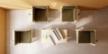 Bố cục gồm ba module ghép liền mạch, tạo nên một tổng thể vừa gọn gàng vừa có tính tạo hình, phù hợp cho phòng khách, sảnh đón, studio hoặc không gian nghỉ ngơi tối giản.