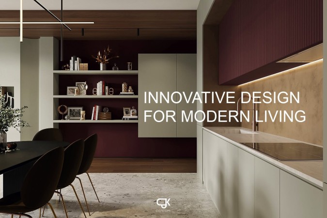 Căn hộ The Red mang phong cách hiện đại, tối giản chi tiết, nổi bật cá tính trẻ trung qua bảng màu đỏ trầm và sự cân bằng giữa chuẩn mực và tự do.